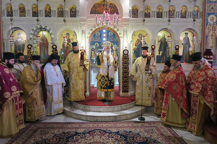 Στην πανηγυρική Θεία Λειτουργία ιερούργησε και μίλησε ο Μητροπολίτης Φθιώτιδος Νικόλαος με τη συμμετοχή ιερέων της πόλεως, έψαλαν δε δύο Βυζαντινές χορωδίες, τις οποίες διηύθυναν ο Πρωτοψάλτης και Καθηγητής κ. Σεραφείμ Κυρίτσης και ο Πρωτοψάλτης της Ενορίας κ. Γεώργιος Μπαλάφας.